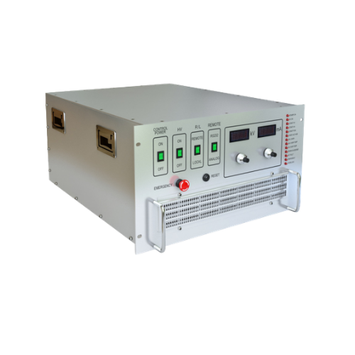 With output voltages of 20kV, 35kV, 50kV and 100kV makes this rack mount power supply extremely versatile for use in a wide variety of applications and processes.