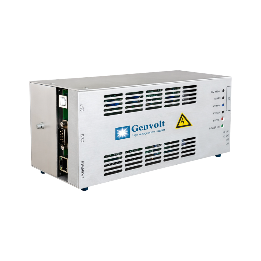 The Genvolt 8000 Series High Voltage DC Power Supply is a rugged modular range of AC-input DC high voltage units designed to operate from a universal mains input of 85VAC to 256VAC at 50/60Hz. Power output options range from 500V to 70kV at 120W and from 49kV to 70kV at 200W, providing stable performance for demanding high-voltage industrial and scientific applications.